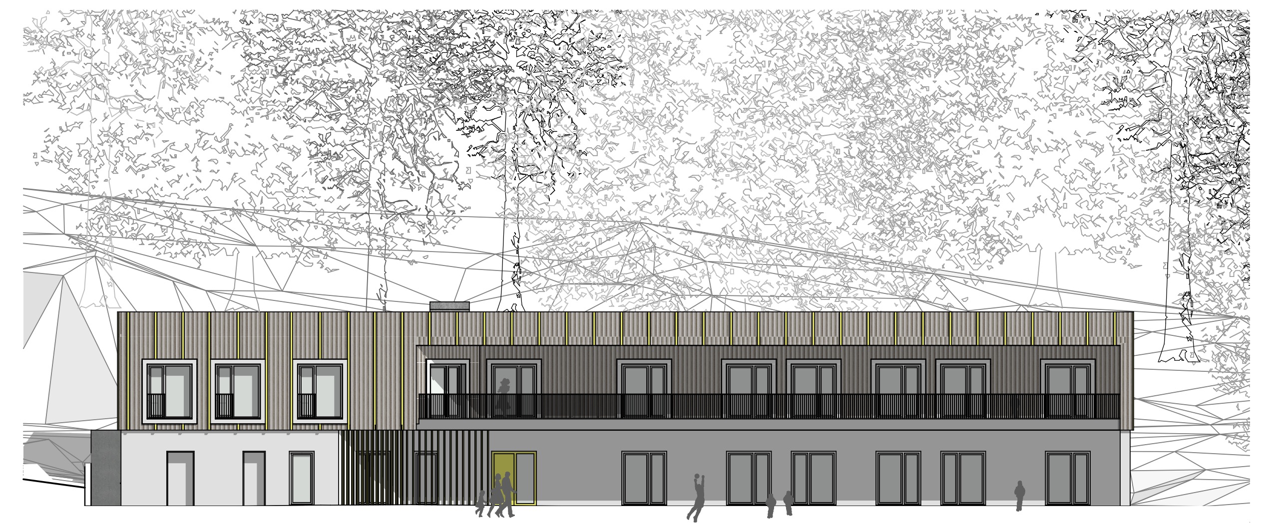 Im Rahmen einer Machbarkeitsstudie wurde die Planung für ein modernes Kinderhaus in der idyllischen Kuranlage „Haus am Jonsberg“ entwickelt. Umgeben vom Waldrand des Zittauer Gebirges bietet der Entwurf einen geschützten, kindgerechten Ort zum Spielen, Entdecken und Verweilen. Die 2-geschossige Anlage integriert sich behutsam in die bestehende Topografie und den historischen Baumbestand und fügt sich modern in das bestehende Kur-Ensemble ein.